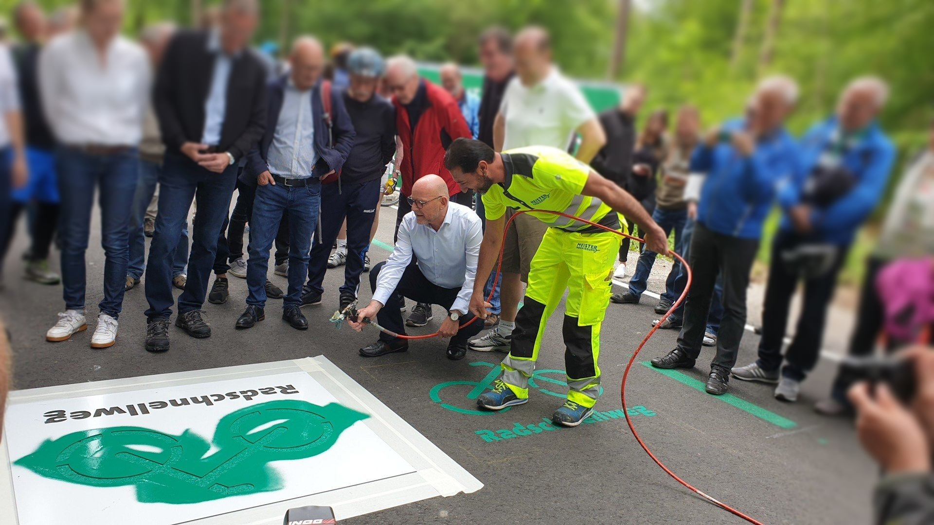 Radwegmarkierung mit Verkehrsminister Winfried Hermann
